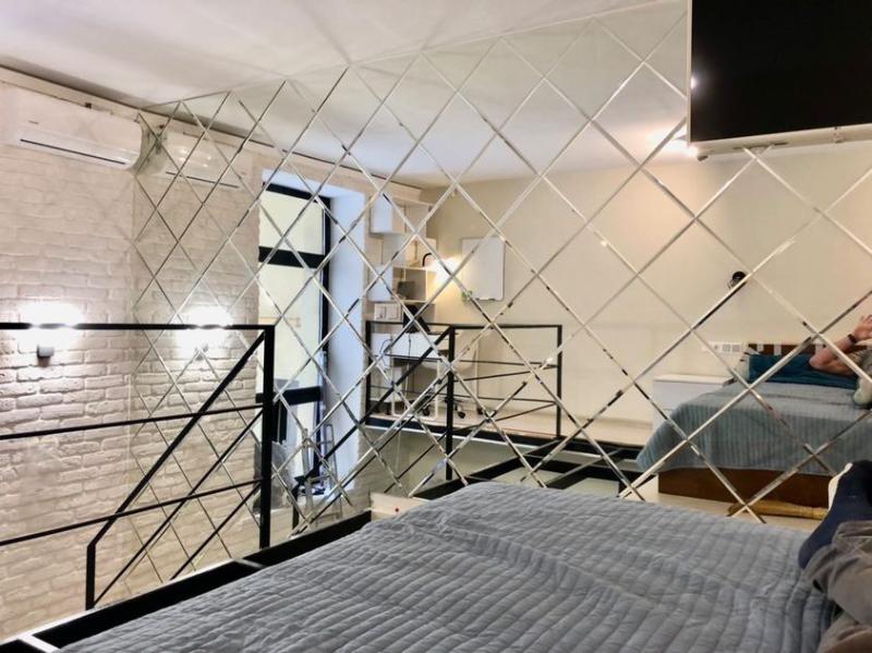 • Зеркальное панно над диваном